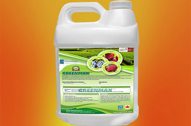 GreenMaxTM is a high quality seaweed (Kelp) liquid formulation that is EcoCert Approved Inputs for organic operations. It is a high Potassium (K) supplement suitable for all crops and growth stages. It is extracted from seaweed (Kelp) by using a unique fermentation process and proprietary ERMP Technology.