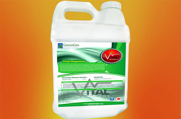 VITAL Mn 4% is a specially formulated fertilizer by using AgriSol’s proprietary ERMP technology to prevent and quickly correct Mn deficiencies. VITAL MANGANESE (4%) is made with all chelated nonsulfate sources of Manganese, which can be used along with calcium products.