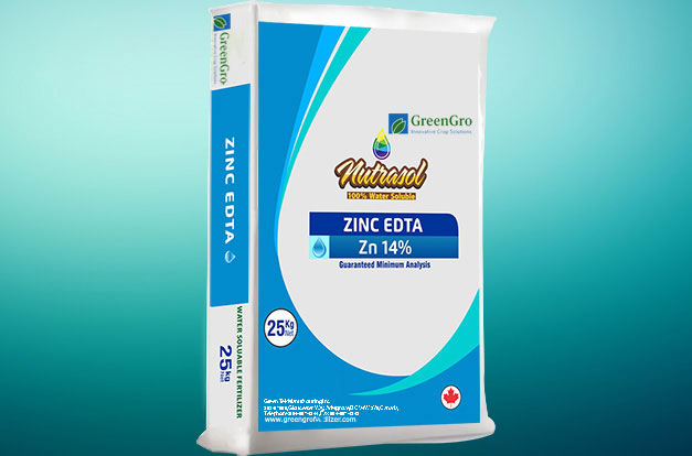 Zinc EDTA (Ethylenediaminetetraacetic acid, zinc disodium) complex is an ideal source of Zn, recommended for use in zinc deficiency. It can be used in greenhouses, open field-through drip/drench or foliar applications.